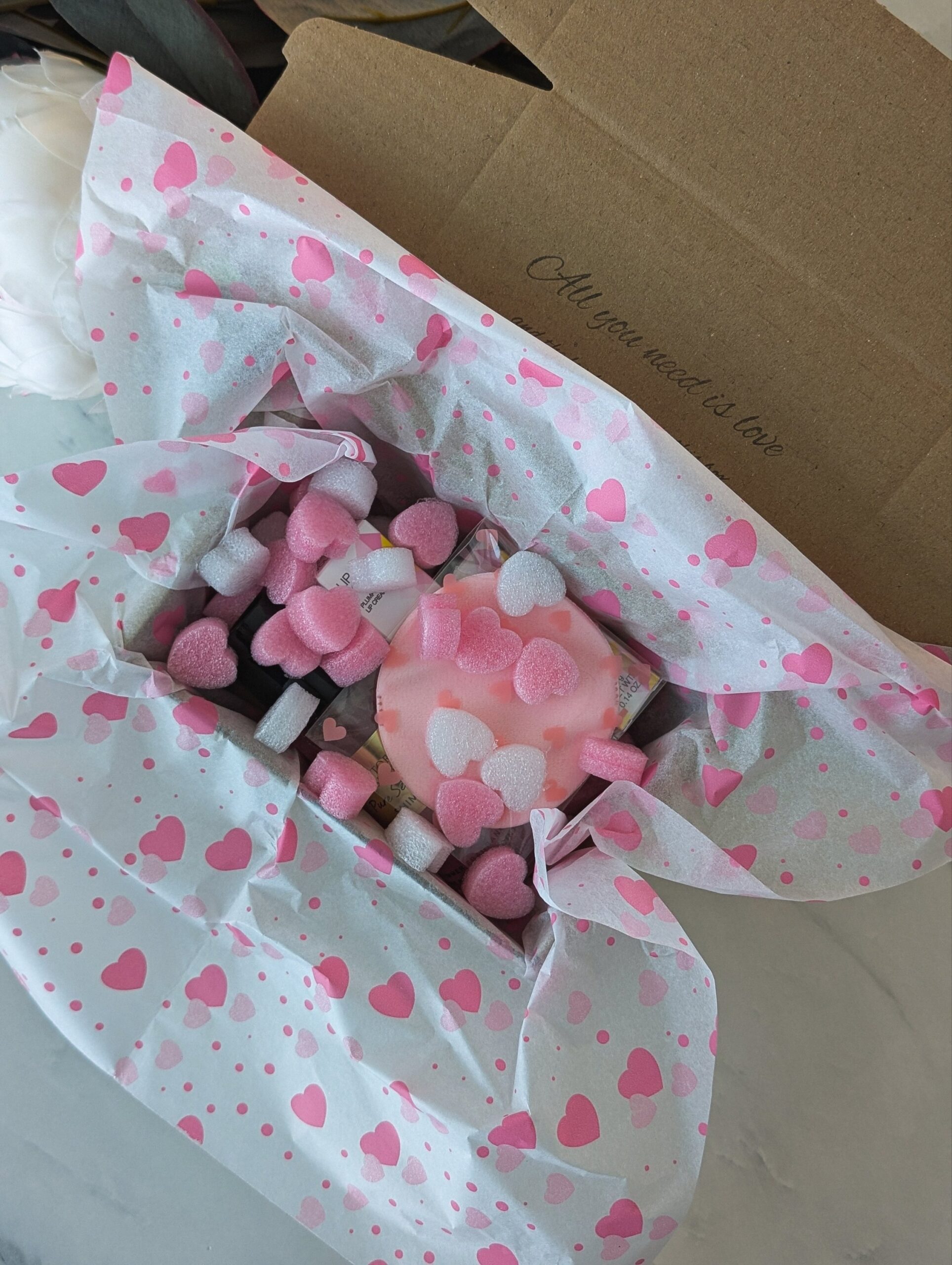 Meie kinkekarbid on kaunistatud elegantse lindiga, südametega ja kaardiga, et luua soe ja südamlik meeleolu. Soovi korral saad lisada ka isikliku sõnumi – kaunis kaart teeb kingituse veelgi erilisemaks! Pakume eri suuruses kinkepakendeid – väiksematest toodetest kuni suuremate komplektideni, mis sisaldavad kehahooldustooteid, kosmeetikat, kreeme ja parfüüme.