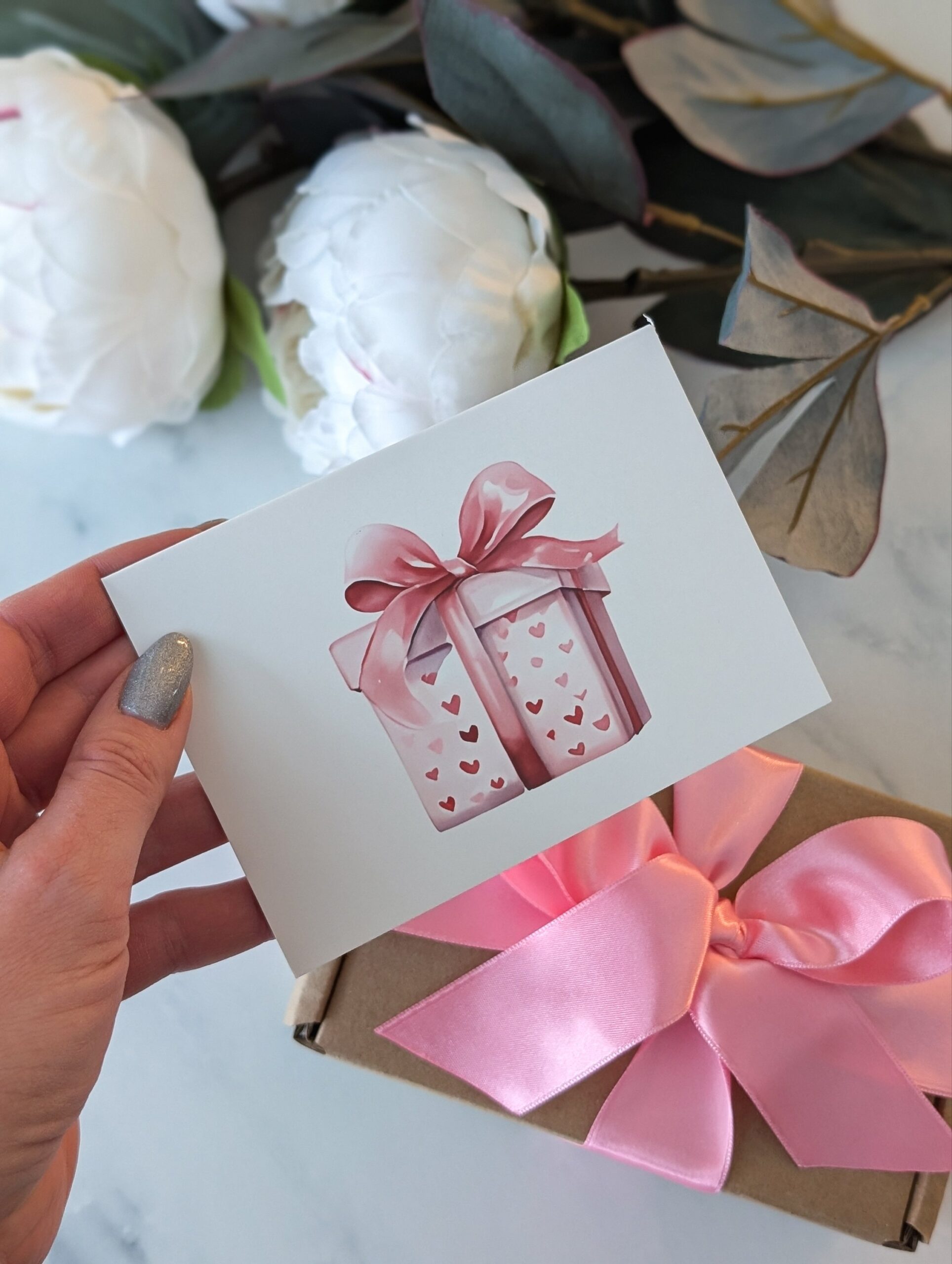 Our gift boxes are decorated with a delicate ribbon, and upon request, we can also add hearts and gift card to create a warm and heartfelt atmosphere. You can also include a personal message – a beautiful card makes your gift even more special! We offer gift packaging in various sizes, from small items to larger sets, including body care products, cosmetics, creams, and perfumes.