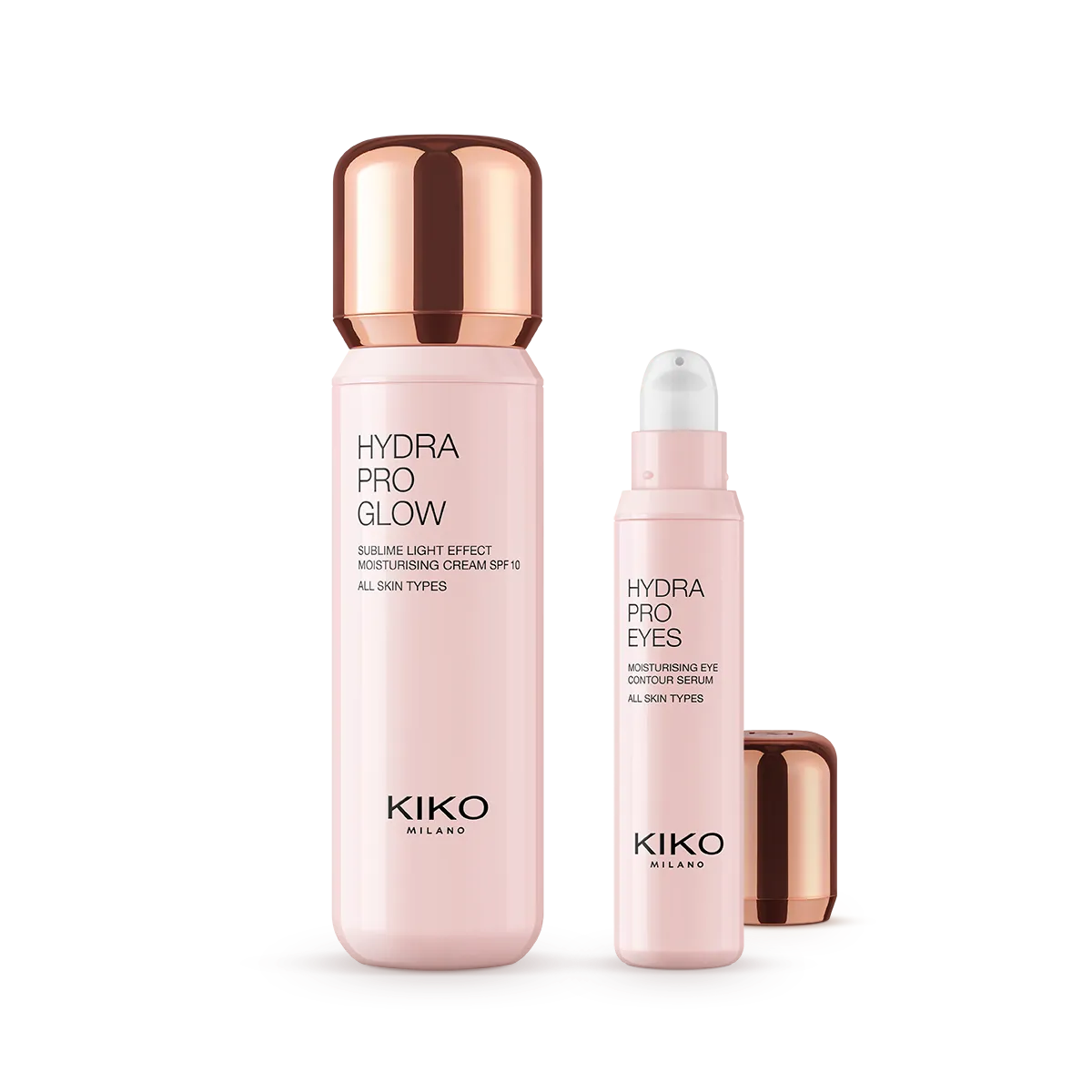 A skincare kit designed to nourish the face and eye contour, featuring two iconic products from the Hydra Pro range by KIKO MILANO.