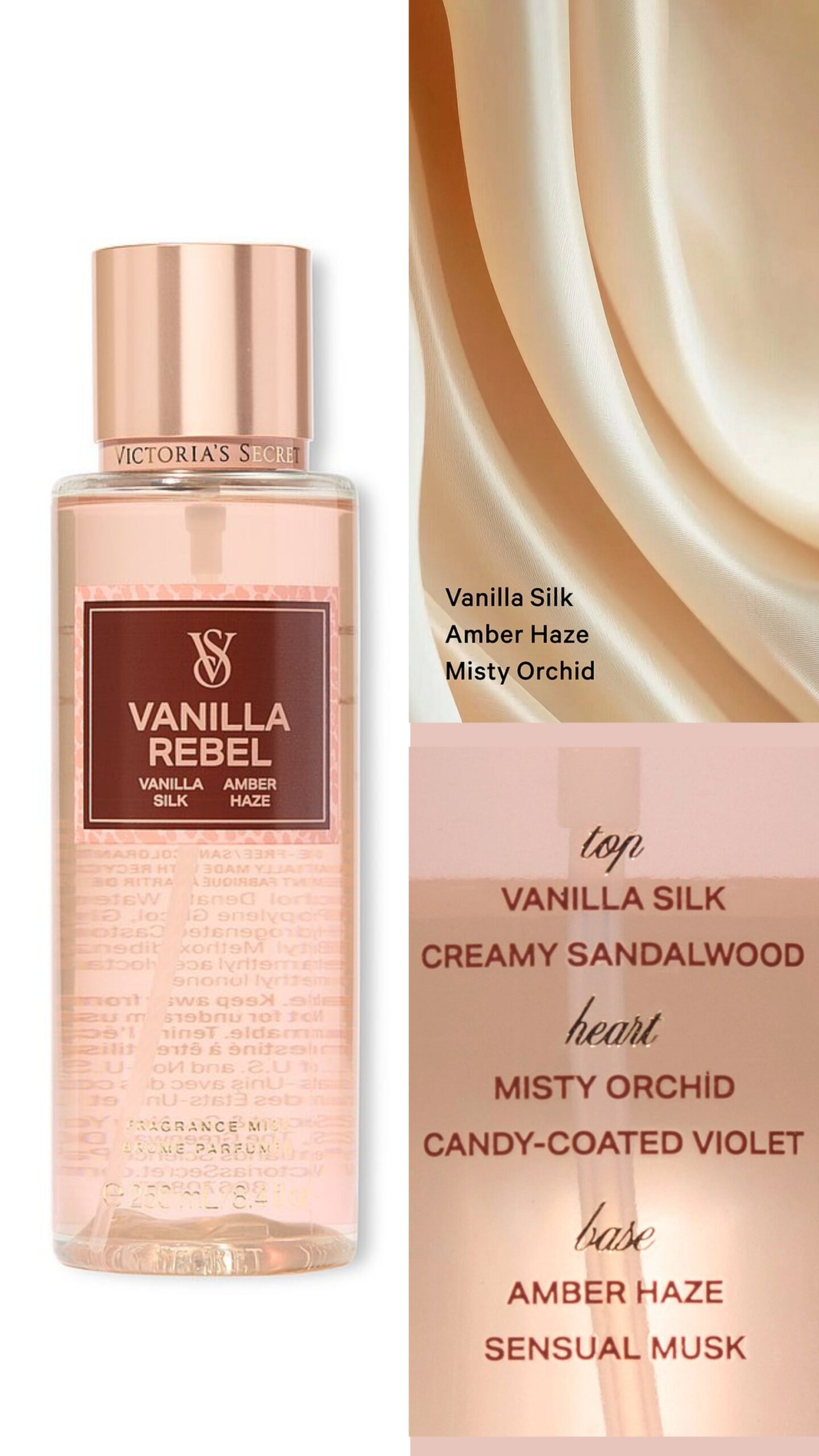 Верхние ноты: «Ванильный шёлк», кремовый сандал